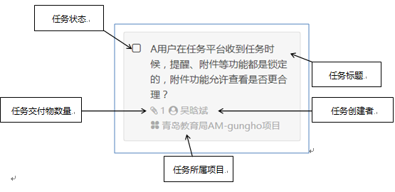 在任務看板中,任務屬性在一個塊狀區域里顯示,如下圖所示: