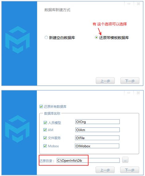 這些其實在企業系統正式部署前,需要做一些基本功能定義,這個定義后 ,最好對 OIAm、OIMobox、OIOrg、Oifile 等4個數據庫進行備份,直接還原到企業服務器上,這樣整體來說數據比較完整及正確。另外也相對方便。(注意:這種mobox還原的模式 只是適合與第一次系統部署。若用戶已經部署過了,已經有自己的數據了,這個bak還原的模式是不適合的,要切記?。?/span>)