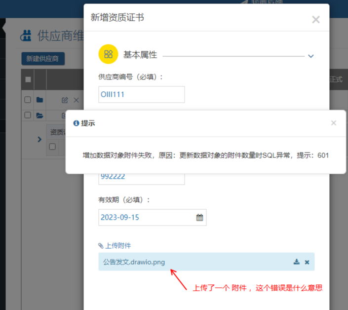 文件上傳:更新數據對象的附件數量時SQL異常,提示:601 2023/09/06 分類:產品中心 問題中心 784 問題描述:(20230906 發現) 若OIDateWebs 升級到 20230614 之后版本 ,而mobox數據對象是之前創建的,并且帶附件。存在OIDateWebs 升級后造成附件上傳異常問題 解決方法: 步驟1)下載OIDataWebS_R_20230905.zip 步驟2)更新OIDataWebS服務 步驟3)將數據對象里面的附件選擇先去掉 ,之后 ,重新添加附件選項 確定后,重新進入 ,將 附件 選項 重新 打上 標簽:問題 上一篇: 低代碼腳本開發-人員選擇 下一篇: 數據庫還原成功后(狀態為:關閉,正常),服務無法鏈接