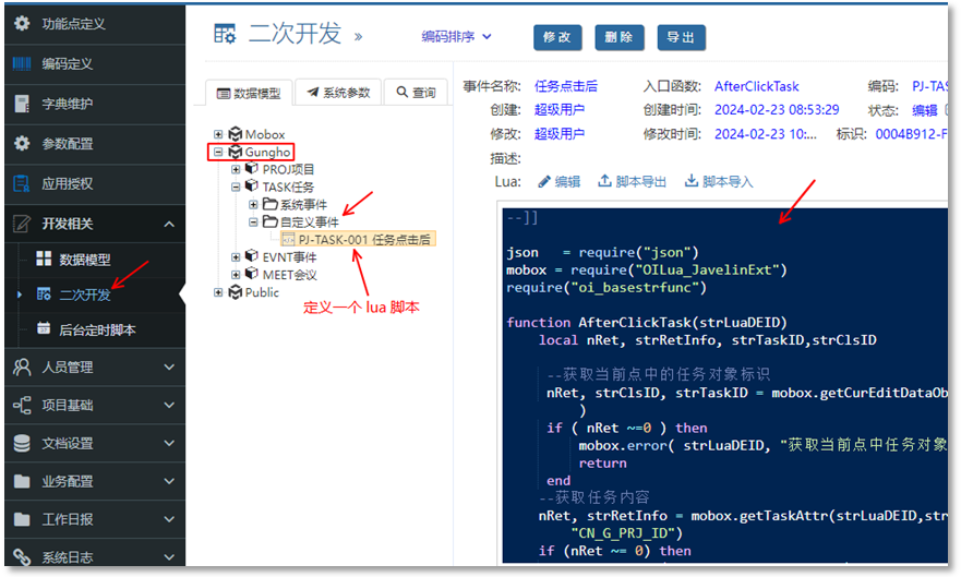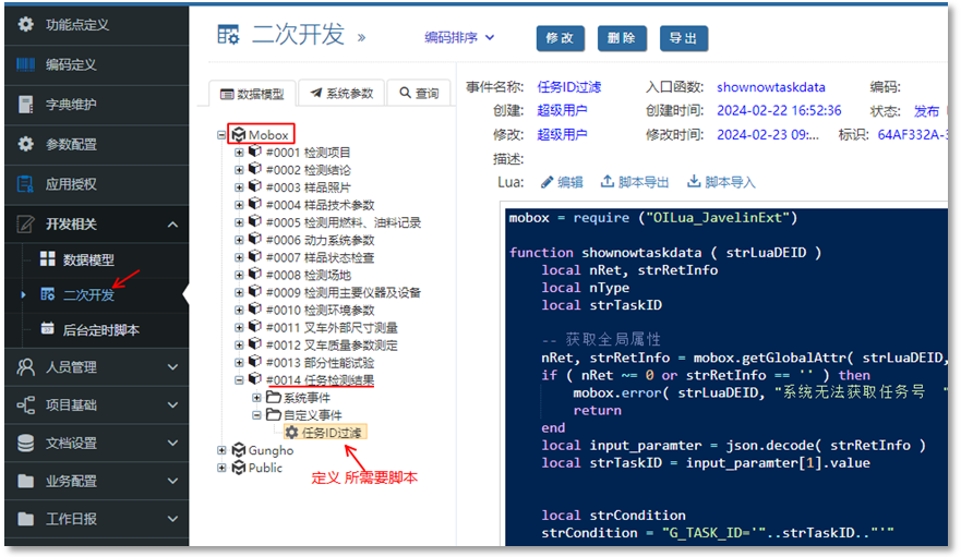 根據需求,圍繞數據模型做二次開發(可能有很多過個腳本,按需求開發)比如