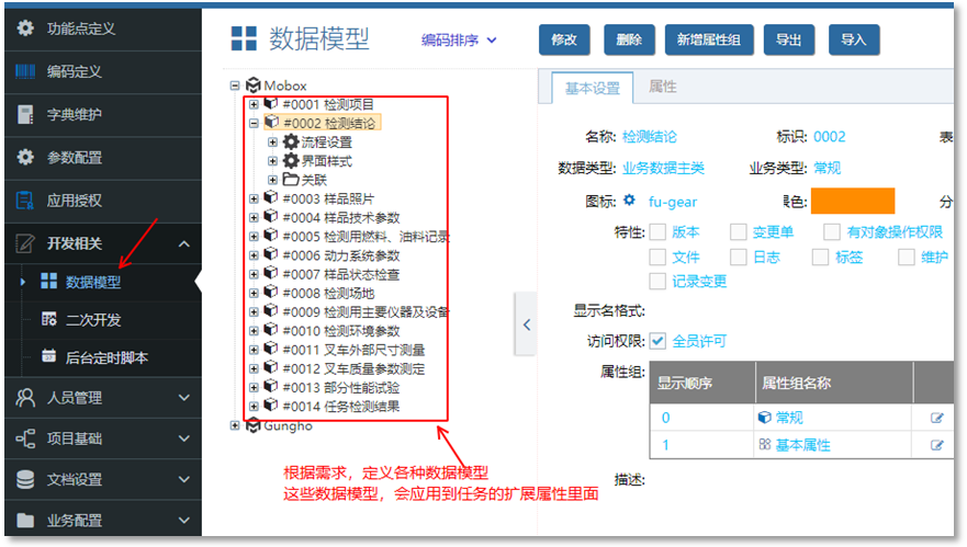 • 數據模型定義 (用于任務擴展屬性的定義)
