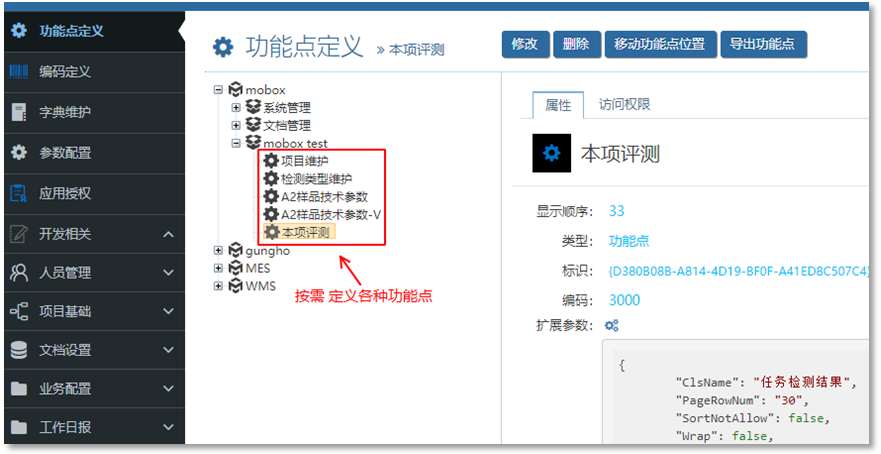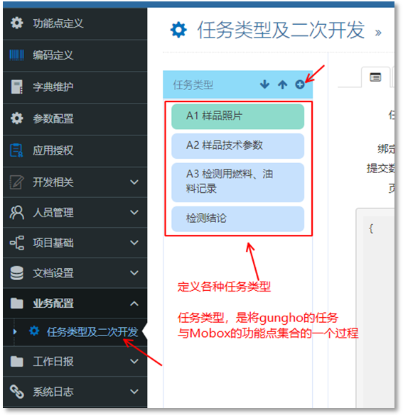自定義里面是將任務與Mobox的功能點集合在一起