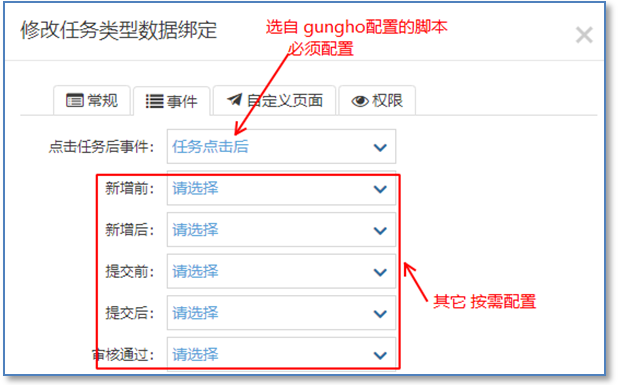 注意:點擊任務后事件 是必須選擇( 來源: gungho領域 – TASK任務 – 某自定義事件)
