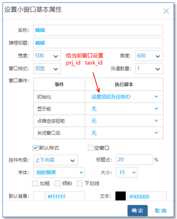 定義小窗口的時候需要注意,有一個窗口初始化腳本要執行(目的是個小窗口內設置prj_id, task_id)