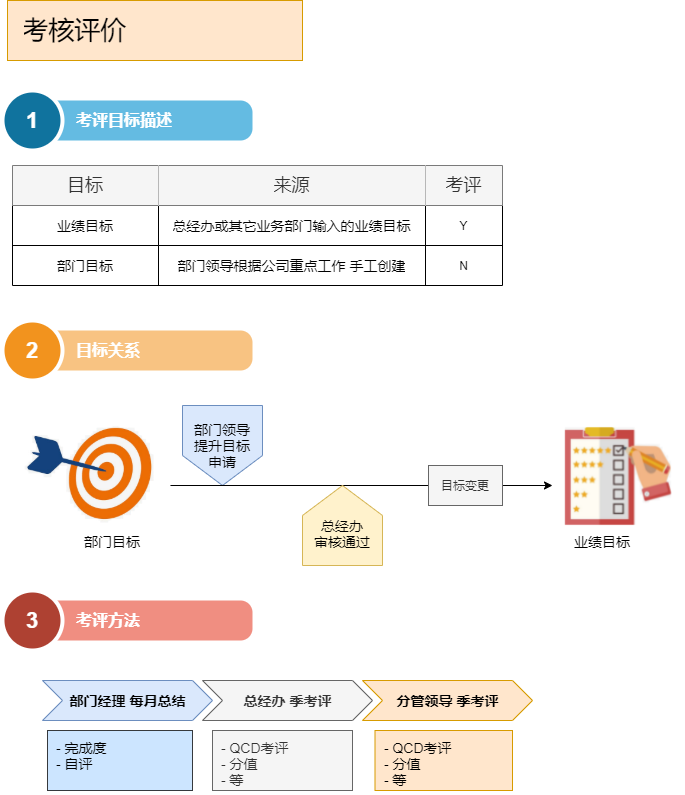 - 若是業(yè)績目標(biāo)或重點工作交辦分解到部門,這些目標(biāo)就必須考核