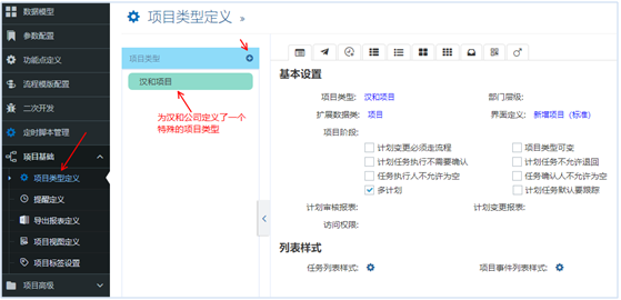 企業(yè)在實施項目管理系統(tǒng)的時候,不通類型的項目其屬性可能是不一樣的。而Gungho標準系統(tǒng)內(nèi)對項目的屬性,主要包括(項目名稱、編號、開始結束日期等)。為了適應企業(yè)個性項目信息的輸入,我們需要通過Mobox平臺定義項目類型去適應這個需求