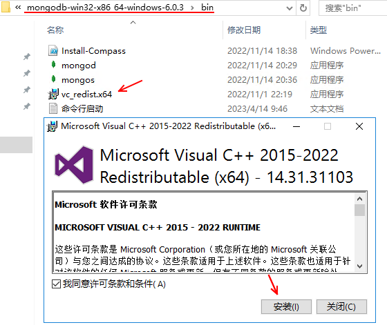 解決方法,運(yùn)行vc發(fā)行環(huán)境就可以(在mongod目錄下面有 vc環(huán)境安裝盤,以管理員身份運(yùn)行)